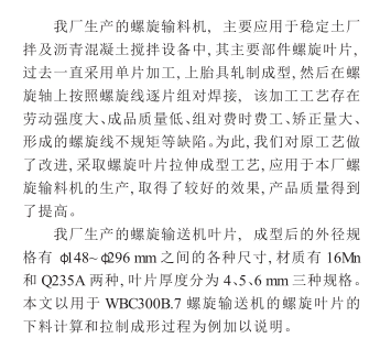 螺旋輸送機(jī)的螺旋葉片有實(shí)體螺旋面、帶式螺旋面和葉片螺旋面三種形式,其中,葉片式螺旋面應(yīng)用相對(duì)較少,主要用于輸送粘度較大和可壓縮性物料,這種螺懸面型,在完成輸送作業(yè)過(guò)程中,同時(shí)具有并完成對(duì)物料的攪拌、混合等功能。